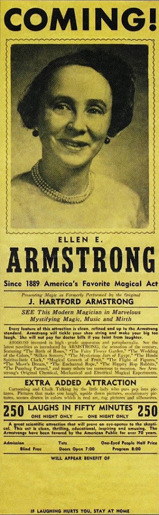 Taking audiences on a journey was Ellen’s talent, regardless of the medium, and “The Celebrated Armstrongs” enjoyed incredible success and critical acclaim as “America’s Greatest Colored Magicians” touring the East Coast, Cuba, and even Europe. But all of that came to a screeching halt in 1939 when J. Hartford Armstrong, “King of the Colored Conjurers,” died suddenly.
