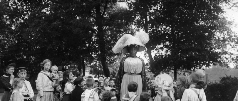 (Eingeschränkte Rechte für bestimmte redaktionelle Kunden in Deutschland. Limited rights for specific editorial clients in Germany.) German Empire – Giantess.Abomah, a very tall woman, be gaze by a group of children. – 1911Vintage property of ullstein bild (Photo by ullstein bild/ullstein bild via Getty Images)