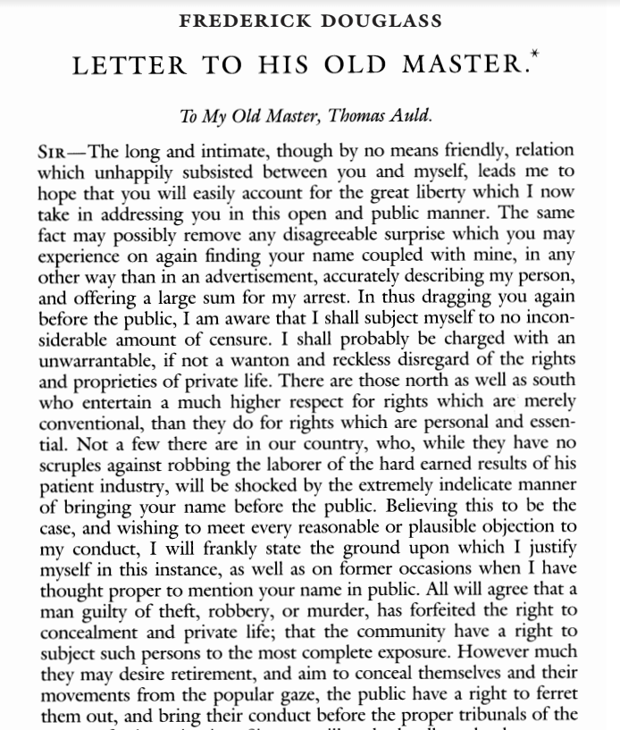 yourself, to repentance,” and closing with “I am your fellow-man, but not your slave.” Read it in full here.
