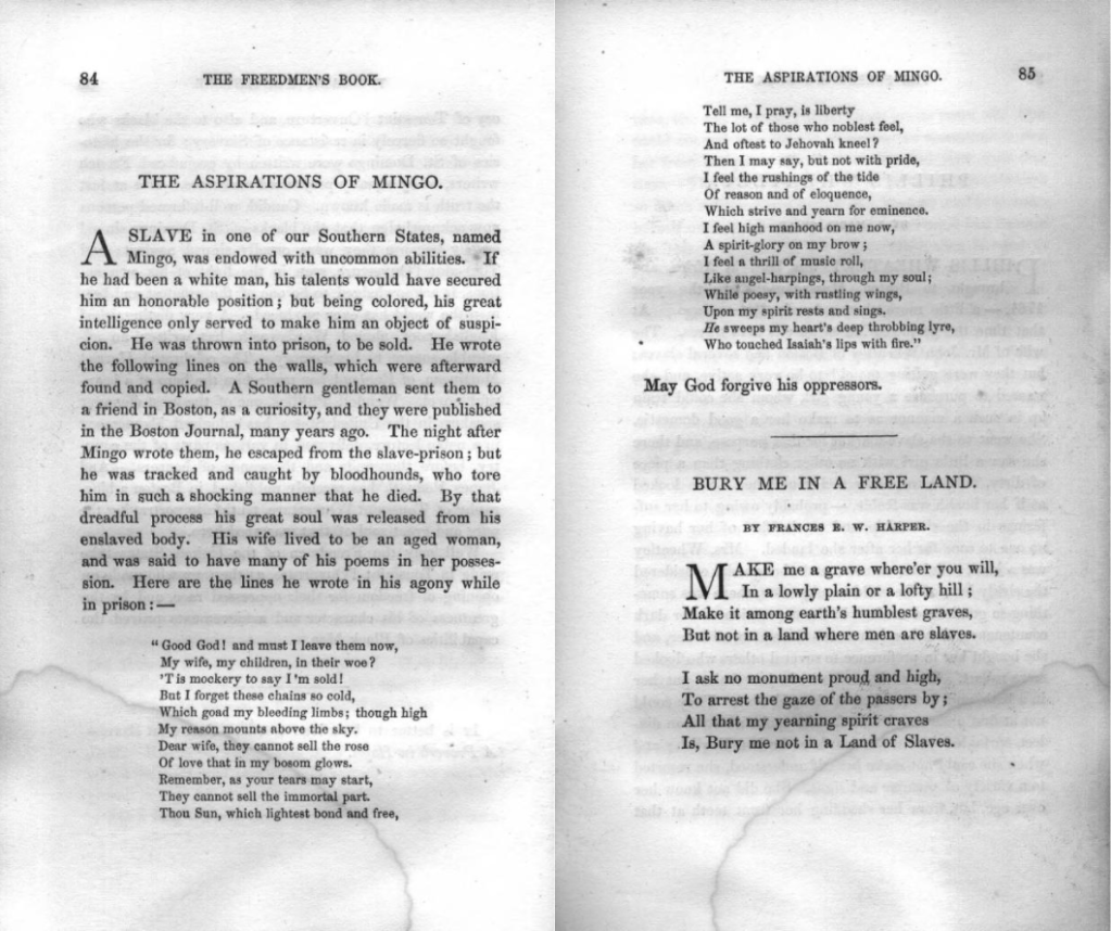 Those words, written by L. Maria Child, editor of The Freedmen’s Book and an active abolitionist, preface a poem inscribed on a prison wall by an enslaved man named Mingo before he was torn apart by pursuit dogs.